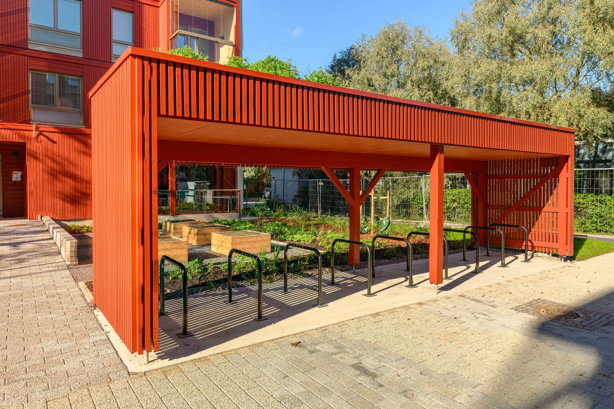 Asukkaiden käytettävissä ovat huoneistokohtaiset irtaimistovarastot sekä liikuntaväline- ja lastenvaunuvarasto, pesula ja kuivaushuone. Ullakkokerroksen talosauna, pukuhuoneet ja oleskelutila ovat myös asukkaiden käytettävissä, ja piha-alue on yhteiskäytössä korttelin muiden talojen asukkaiden kanssa. Pihalla on viljelylaatikoita ja viherkattorakenteisia pyöräkatoksia runkolukittavilla pyörätelineillä. Asukkaat voivat hyödyntää myös A-portaan maantasokerroksessa sijaitsevaa kerhotilaa.