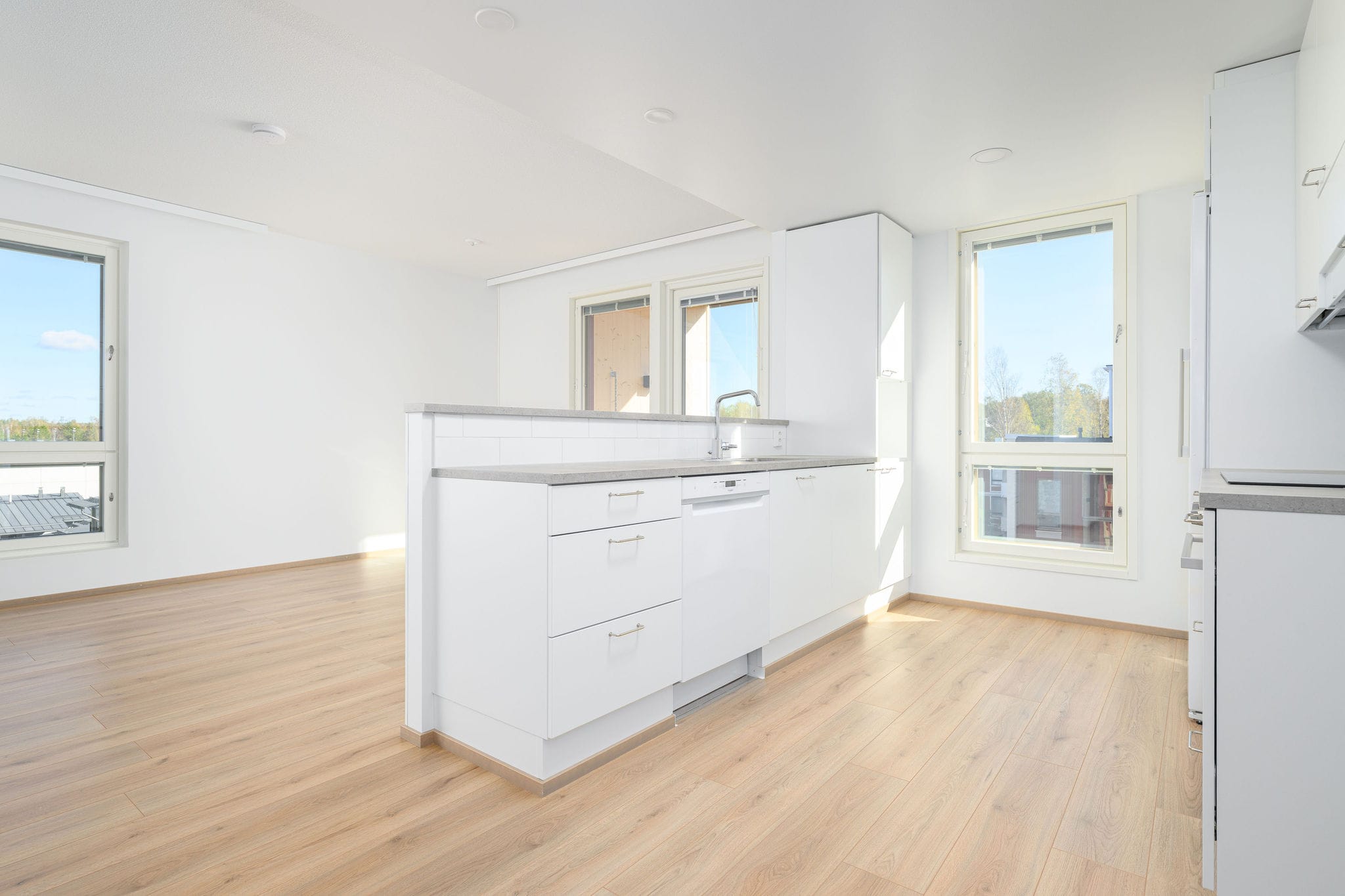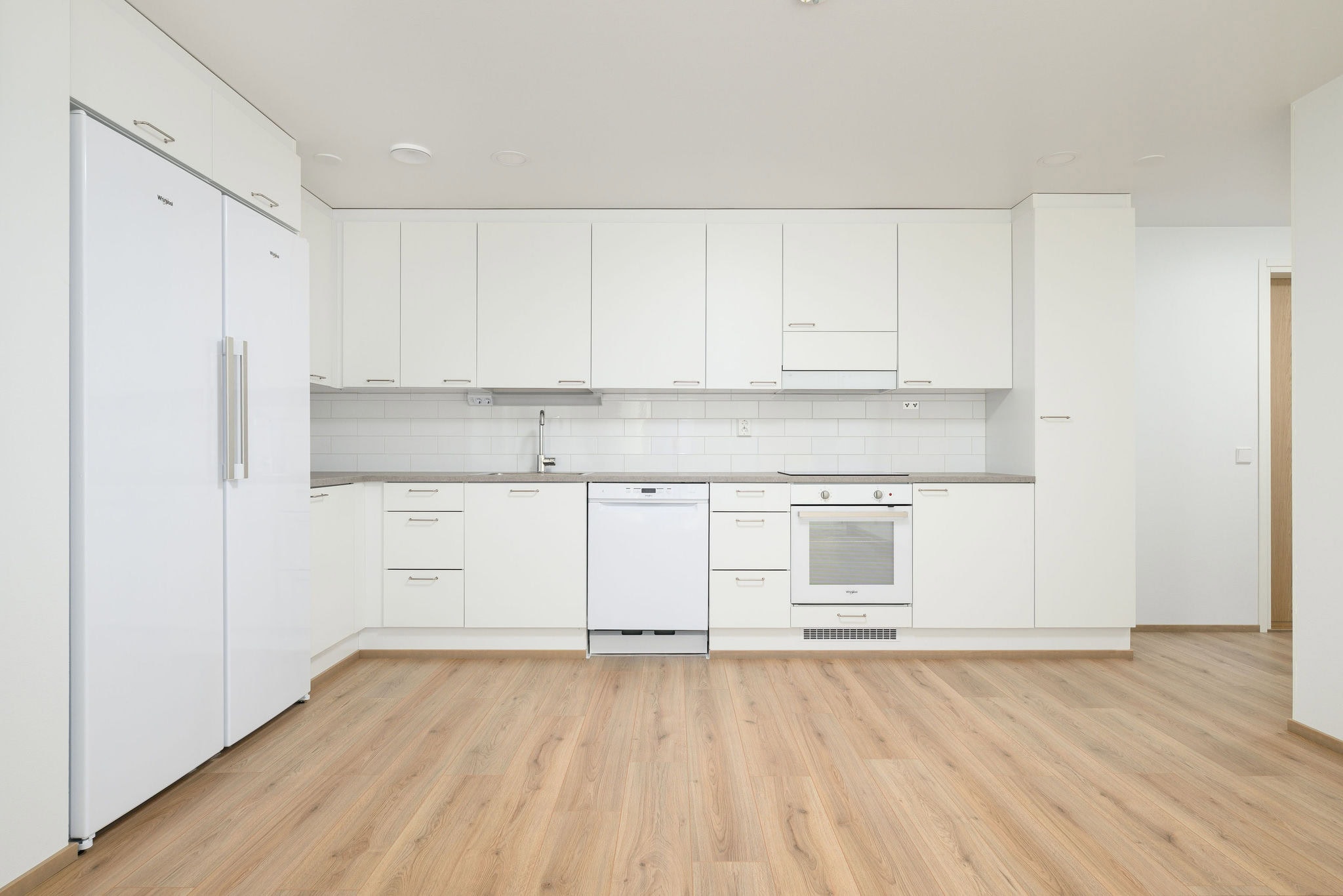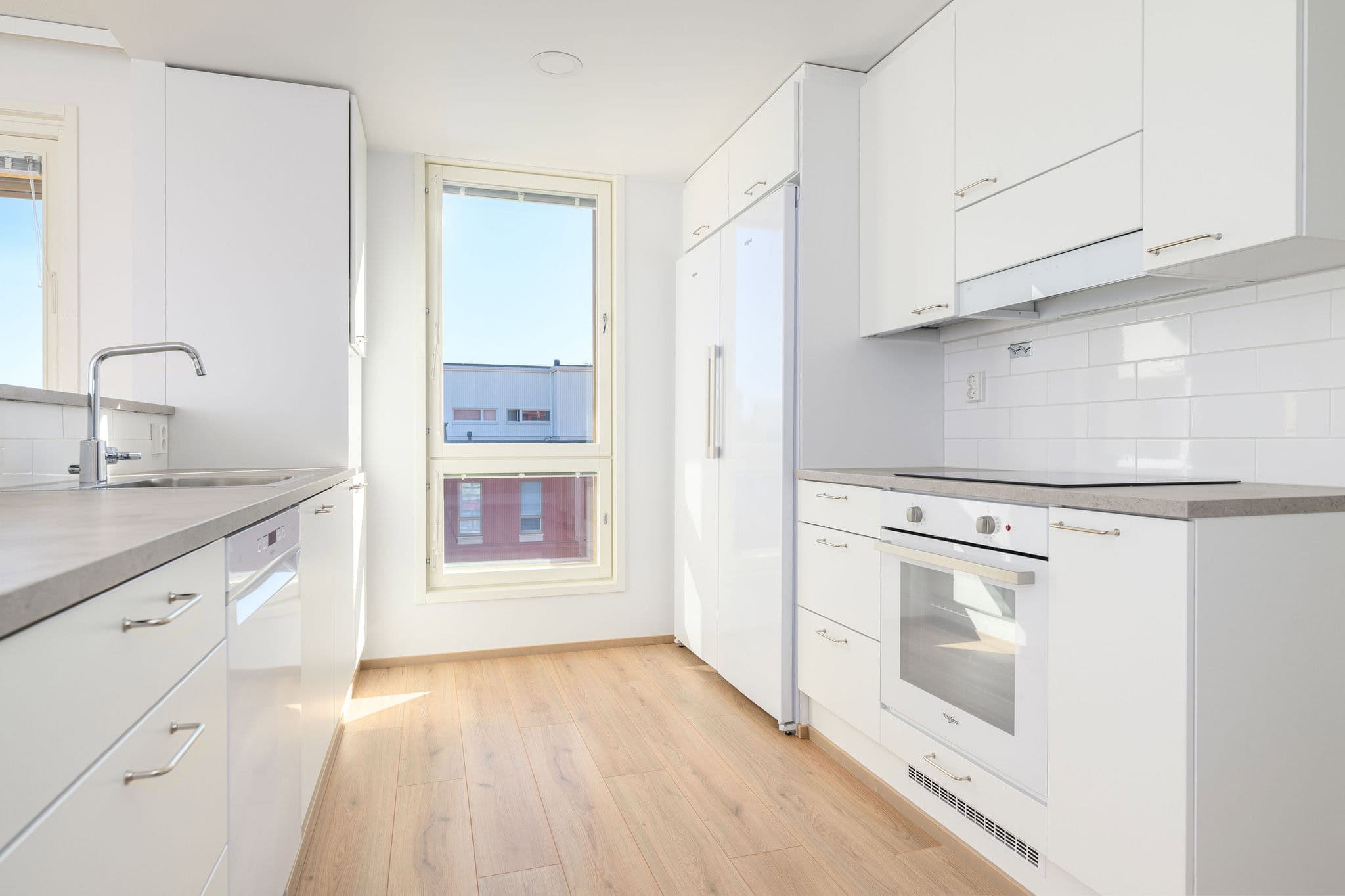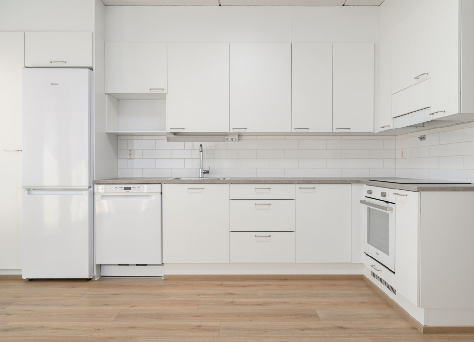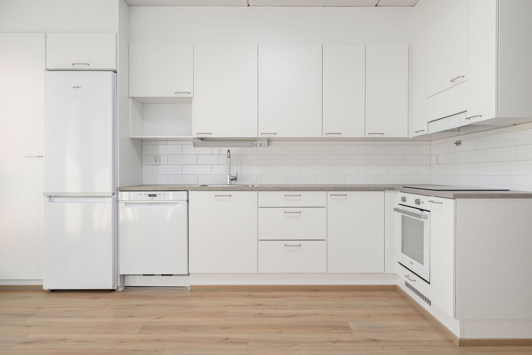 Keittiöt on varustettu laadukkailla kodinkoneilla, kuten induktiokeittotasolla, erillisuunilla, liesikuvulla, jääkaappipakastimella tai jääkaapilla sekä pakastimella ja astianpesukoneella. Mikroaaltouunille on tilavaraus.