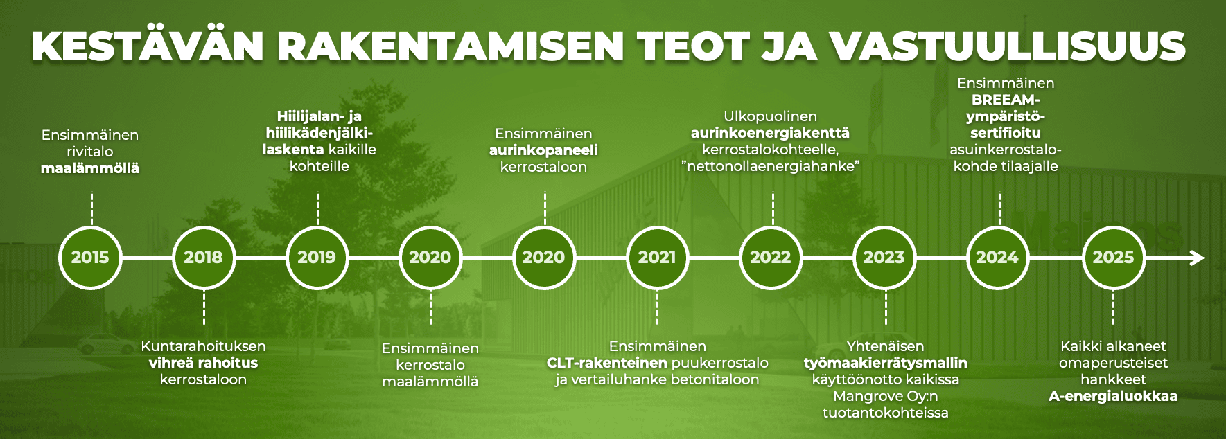 - Energialuokka A: hillitsee ilmastonmuutosta ja näkyy säästönä sähkölaskussa. Toteutettuja A-energialuokan rakennushankkeita 2025 mennessä 21 kpl (rakennuksia 42 kpl).